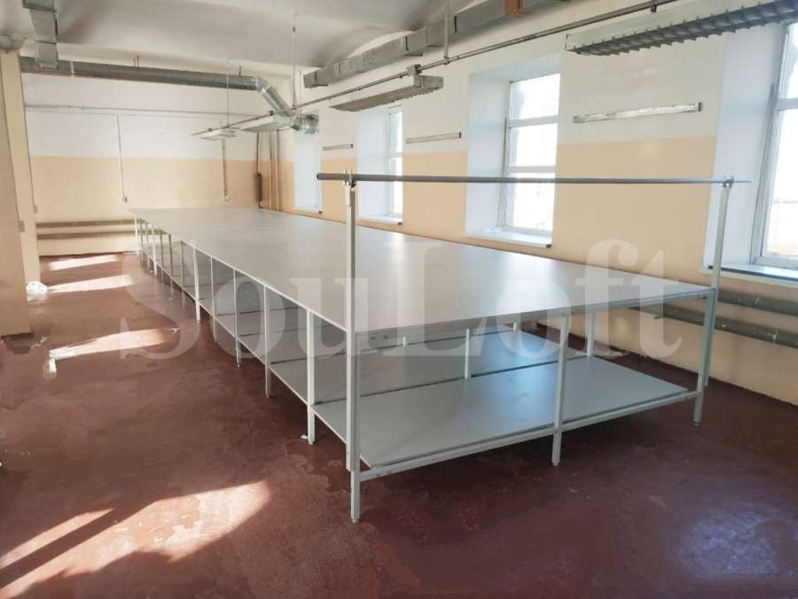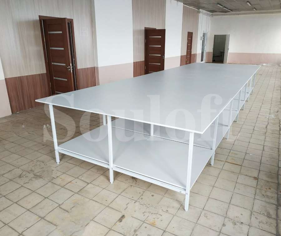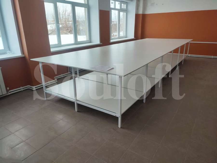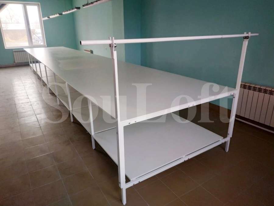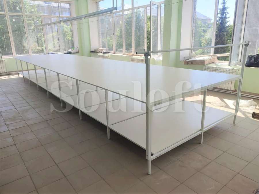 — Каркас стола сборно-разборный, из профильной трубы 30*30 мм. Для столов шириной до 1600 мм – рамы каркаса двух-опорные, от 1700 мм и шире – рамы каркаса трех-опорные.
